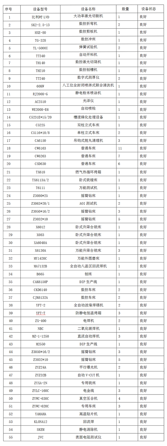 為了提高企業(yè)的產(chǎn)品競爭能力,在企業(yè)建立以來,不斷進行設備投入,使企業(yè)的生產(chǎn)能力不斷提高。具體見主要設備一覽表及附圖。