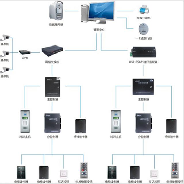 電梯門禁控制系統(tǒng),是在不改變電梯操作面板的硬件基礎上,通過對電梯門禁輸出的繼電器干結點來控制電梯樓層按鈕的開 通和關斷。系統(tǒng)對于乘梯人員進行發(fā)卡授權,憑卡刷卡操作到達指定樓層。來訪人員通過呼叫系統(tǒng),受訪人確認后給予電梯權限信 號,自動到達要訪問的樓層。來訪人也可以通過總臺登記,領取臨時卡就可使用電梯。業(yè)主通過刷卡和按互訪按鈕,能到達任意樓 層,與其他業(yè)主進行互訪。
