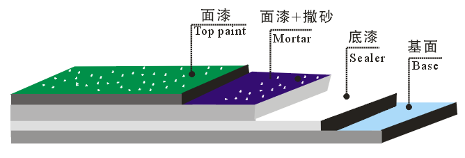 5、表面在滾涂兩遍環(huán)氧色漆,使之均勻滲透至底層,與石英砂結(jié)合牢固。